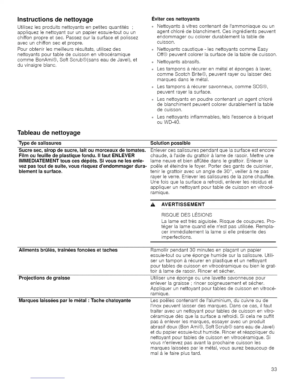 nettoyants pour table de cuisson en vitroceramique