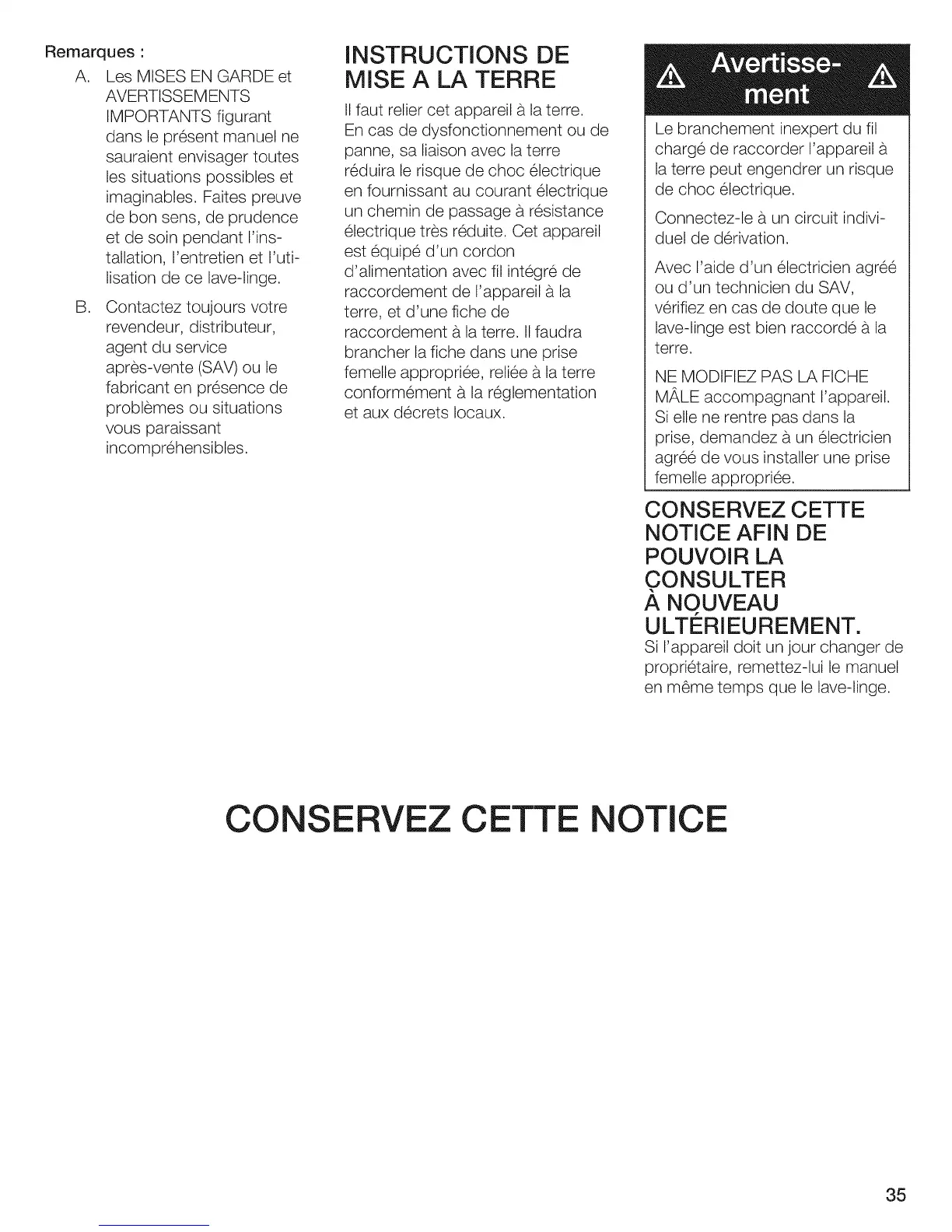 CONSERVEZ CETTE NOTICE
