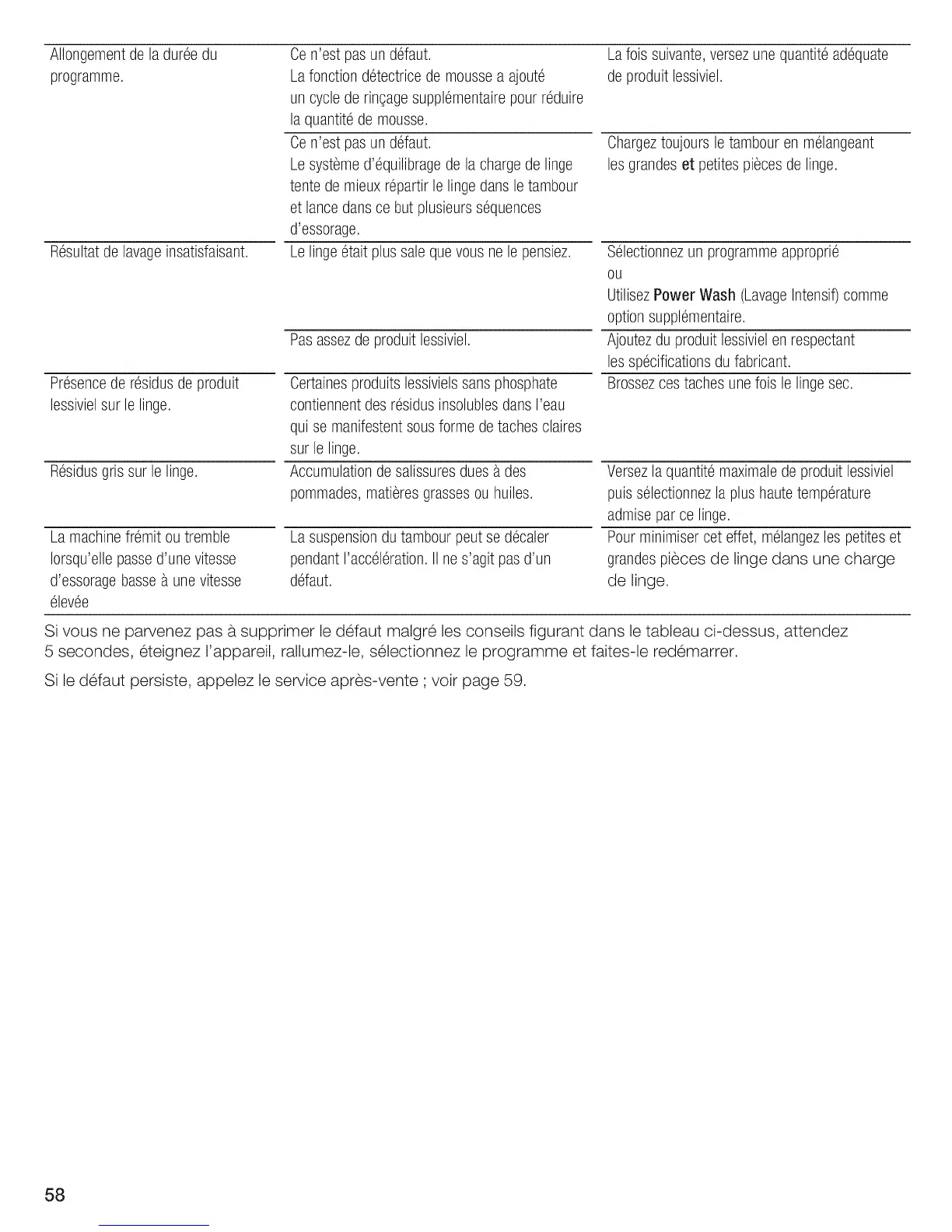 Si le defaut persiste, appelez le service apres-vente ; voir page 59.