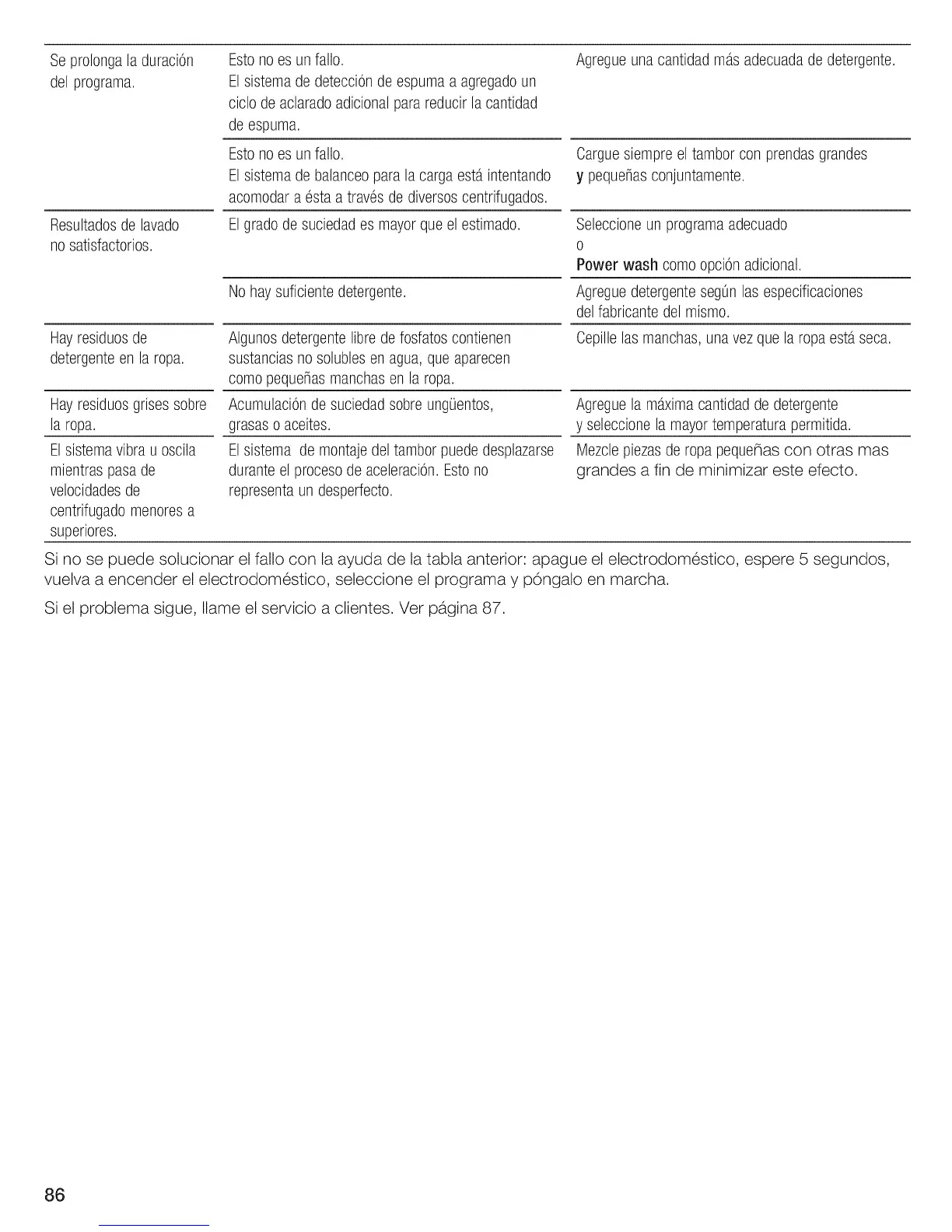 Si el problema sigue, Ilame el servicio a clientes. Ver pagina 87.