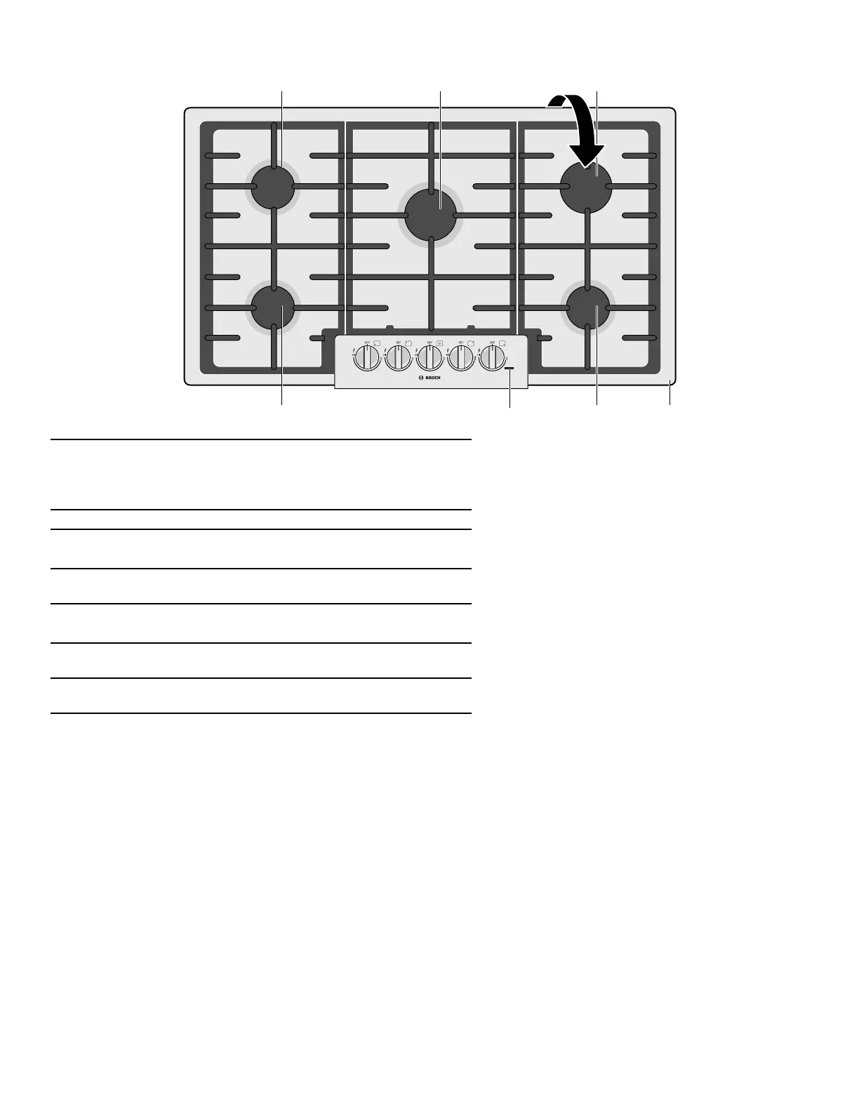 4 Brûleur arrière droit (5 500 BTU /1,61 kW), *fonction