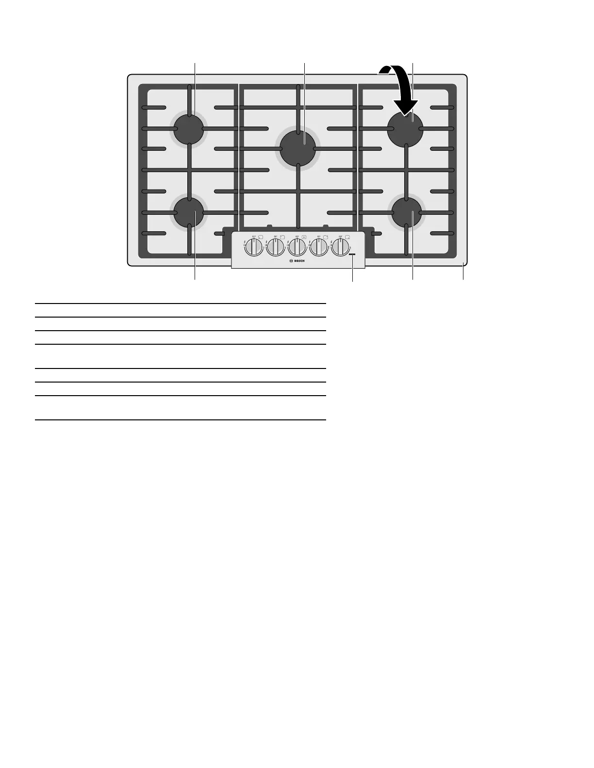 5 Brûleur avant droit (9 300 BTU/2,72 kW)