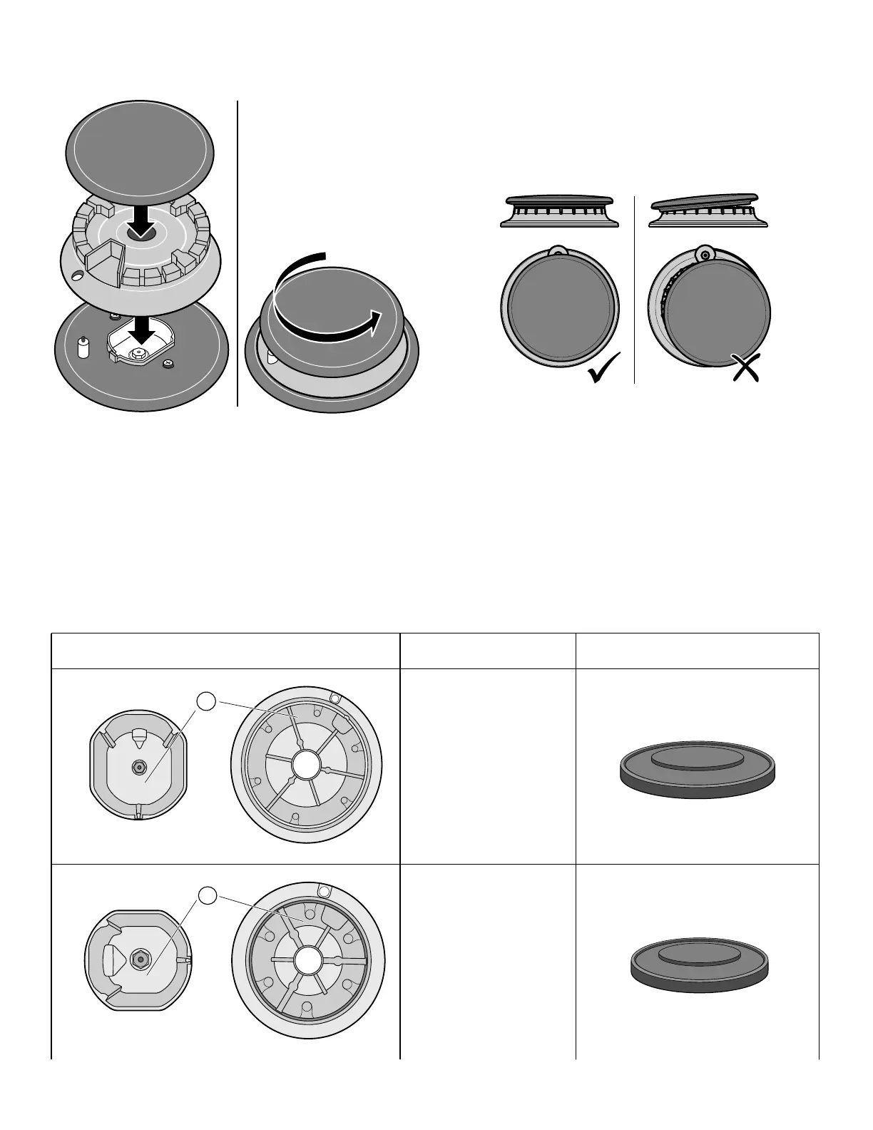 ▯ Déposer délicatement le chapeau de brûleur sur le