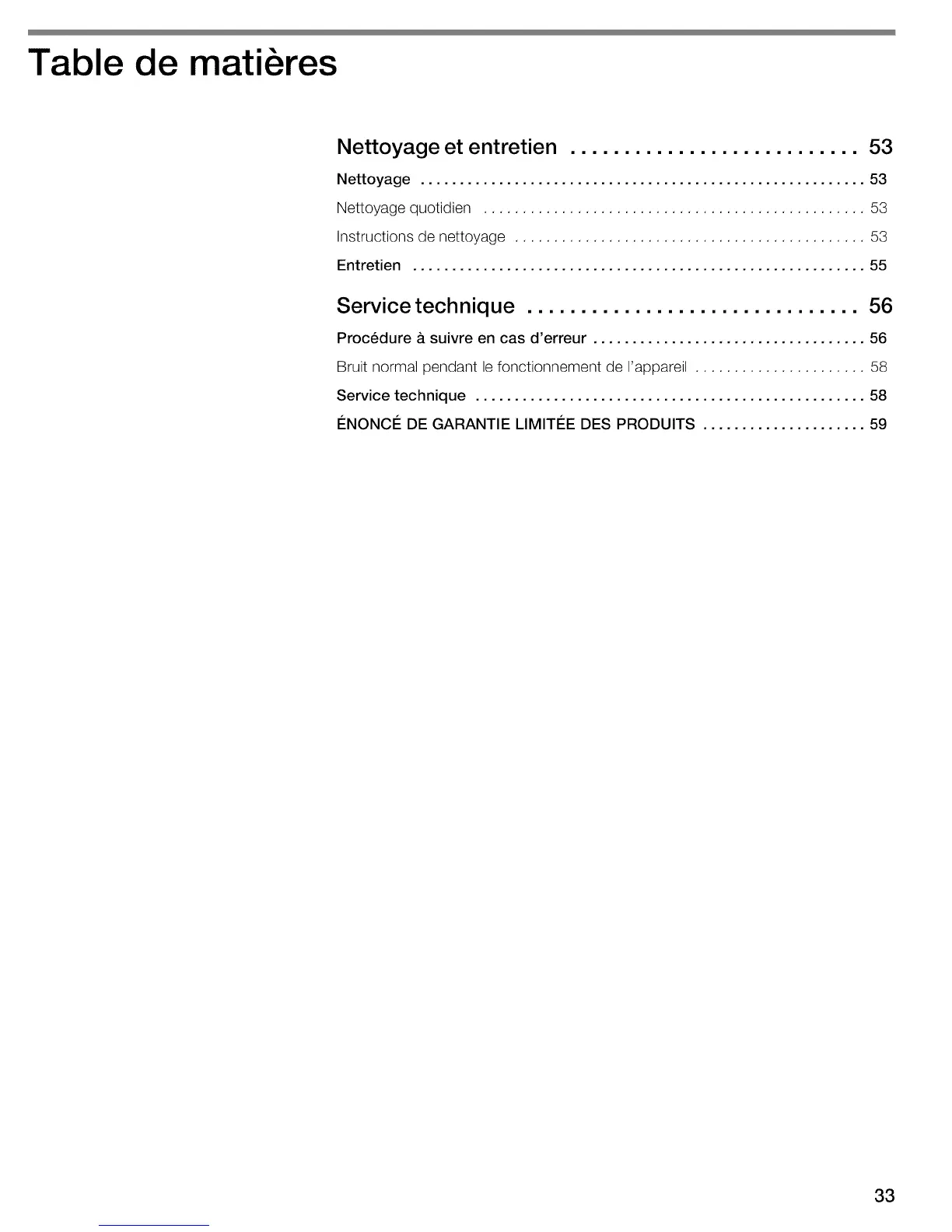 Nettoyage quotidien ................................................. 53