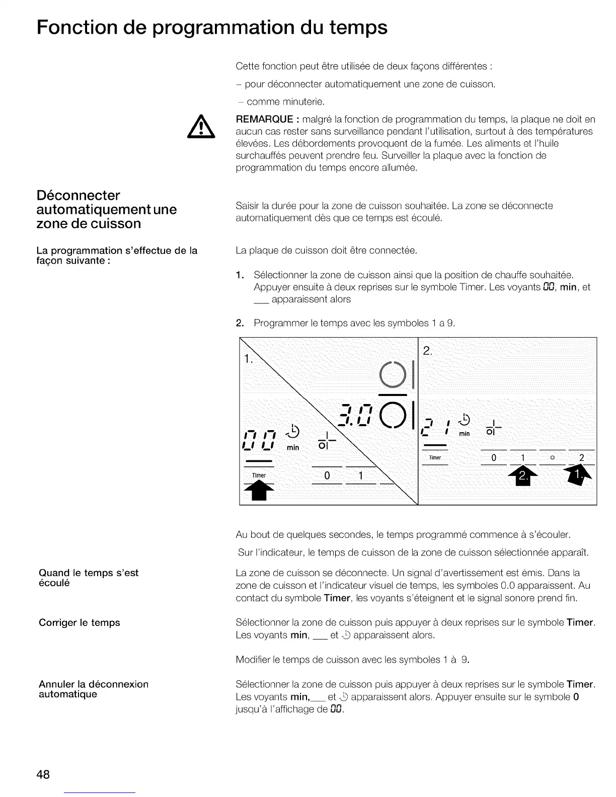 REMARQUE : malgre la fonction de programmation du temps, la plaque ne dolt en