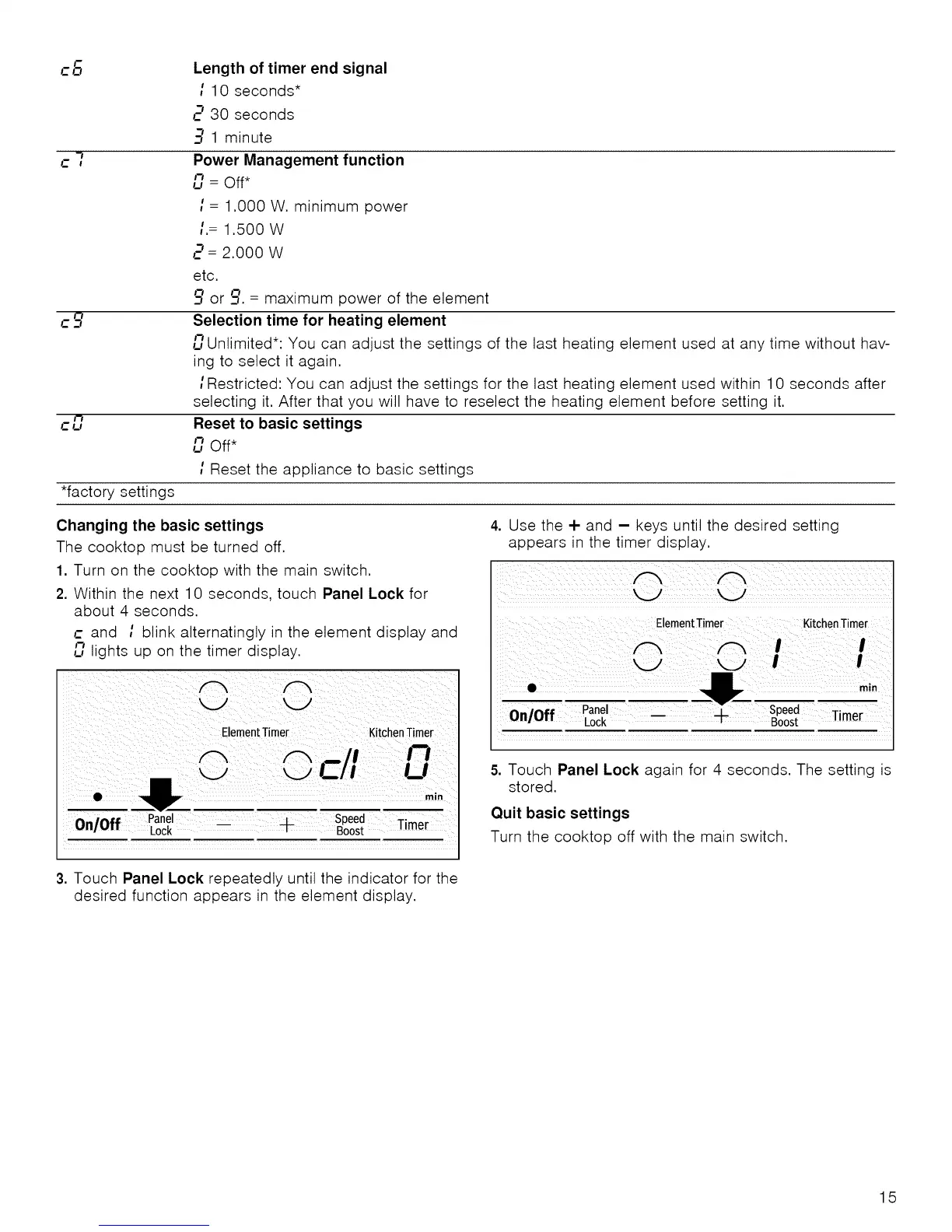 i Restricted: You can adjust the settings for the last heating element used within 10 seconds after