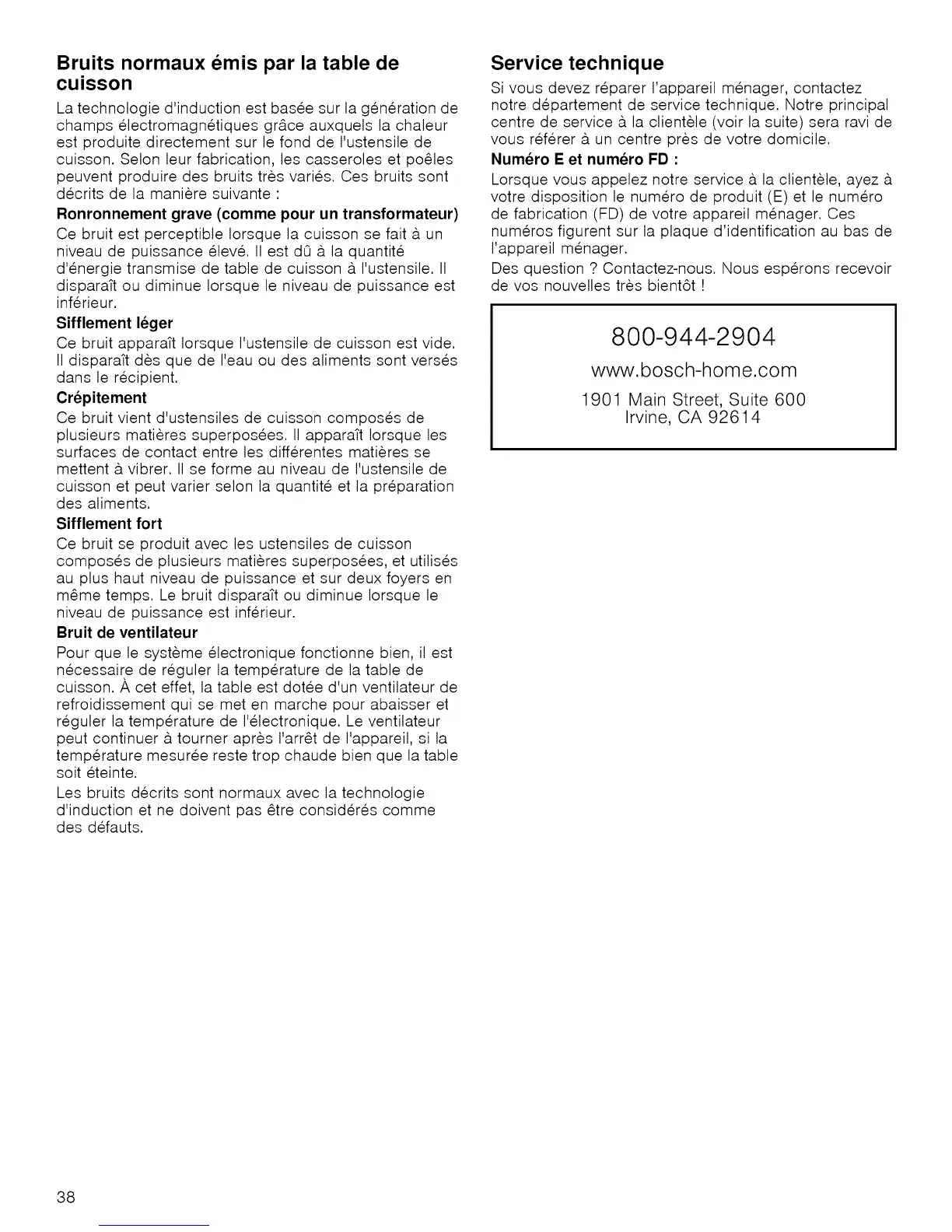 Ce bruit est perceptible Iorsque la cuisson se fait 9.un
