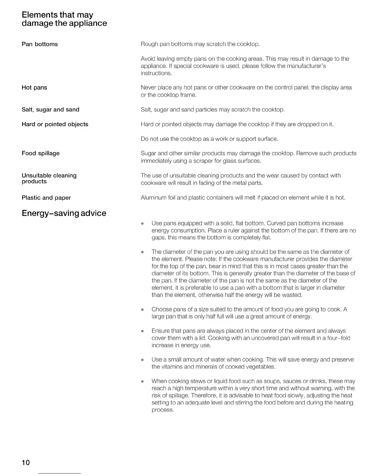 Avoid leaving empty pans on the cooking areas. This may result in damage to the