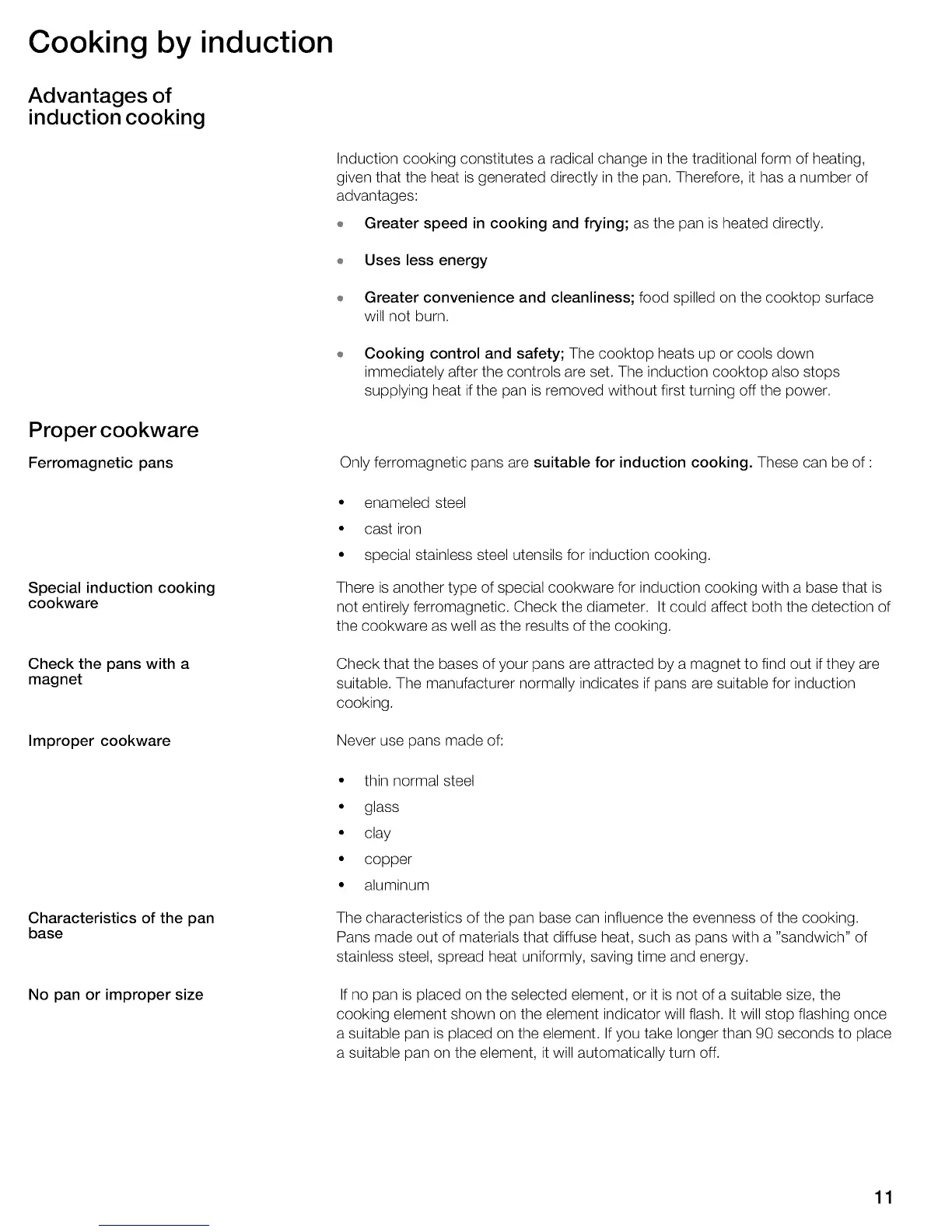 Only ferromagnetic pans are suitable for induction cooking. These can be of