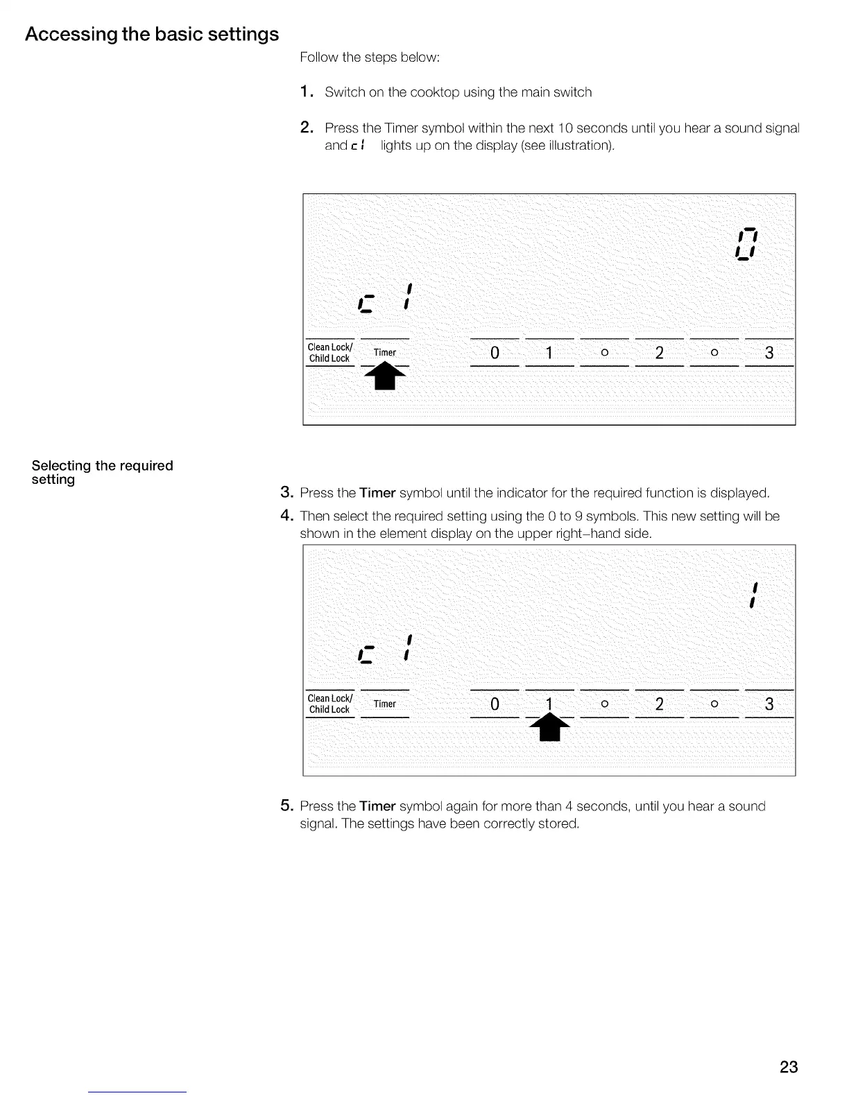 5. Press the Timer symbol again for more than 4 seconds, until you hear a sound