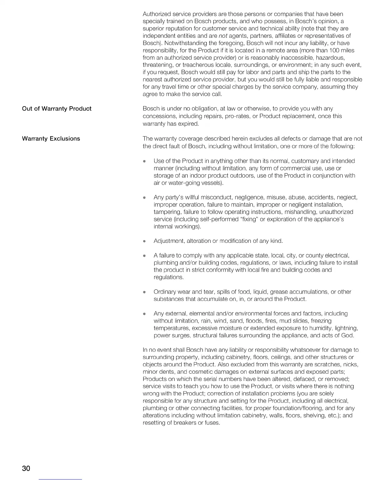Bosch). Notwithstanding the foregoing, Bosch will not incur any liability, or have