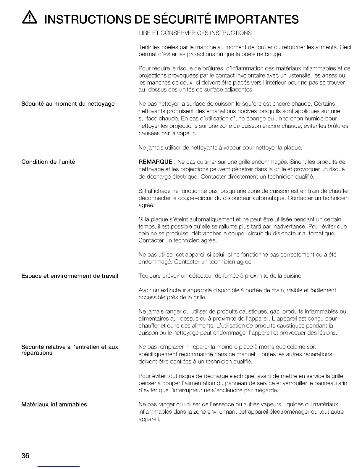 nettoyage et les projections peuvent penetrer dans la grille et provoquer un risque