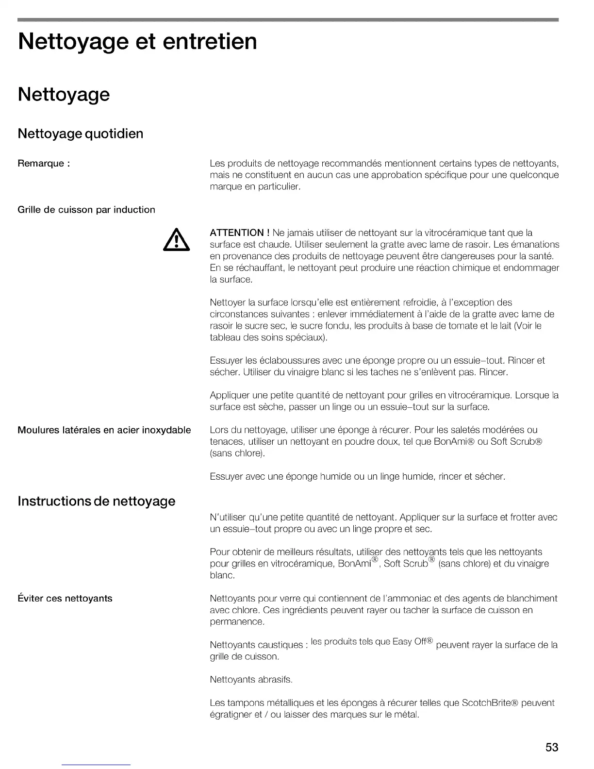 ATTENTION ! Ne jamais utiliser de nettoyant sur la vitroceramique tant que la