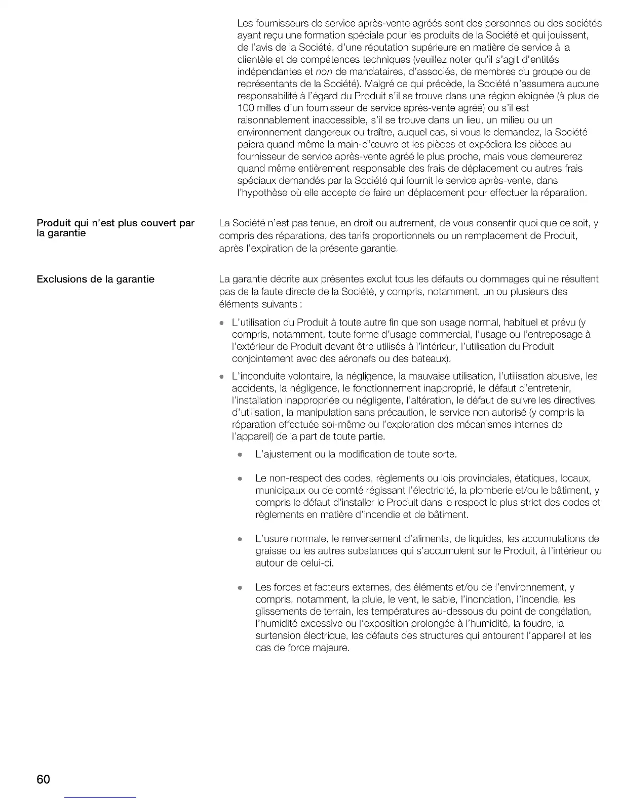 d'utilisation, la manipulation sans precaution, le service non autorise (y compris la