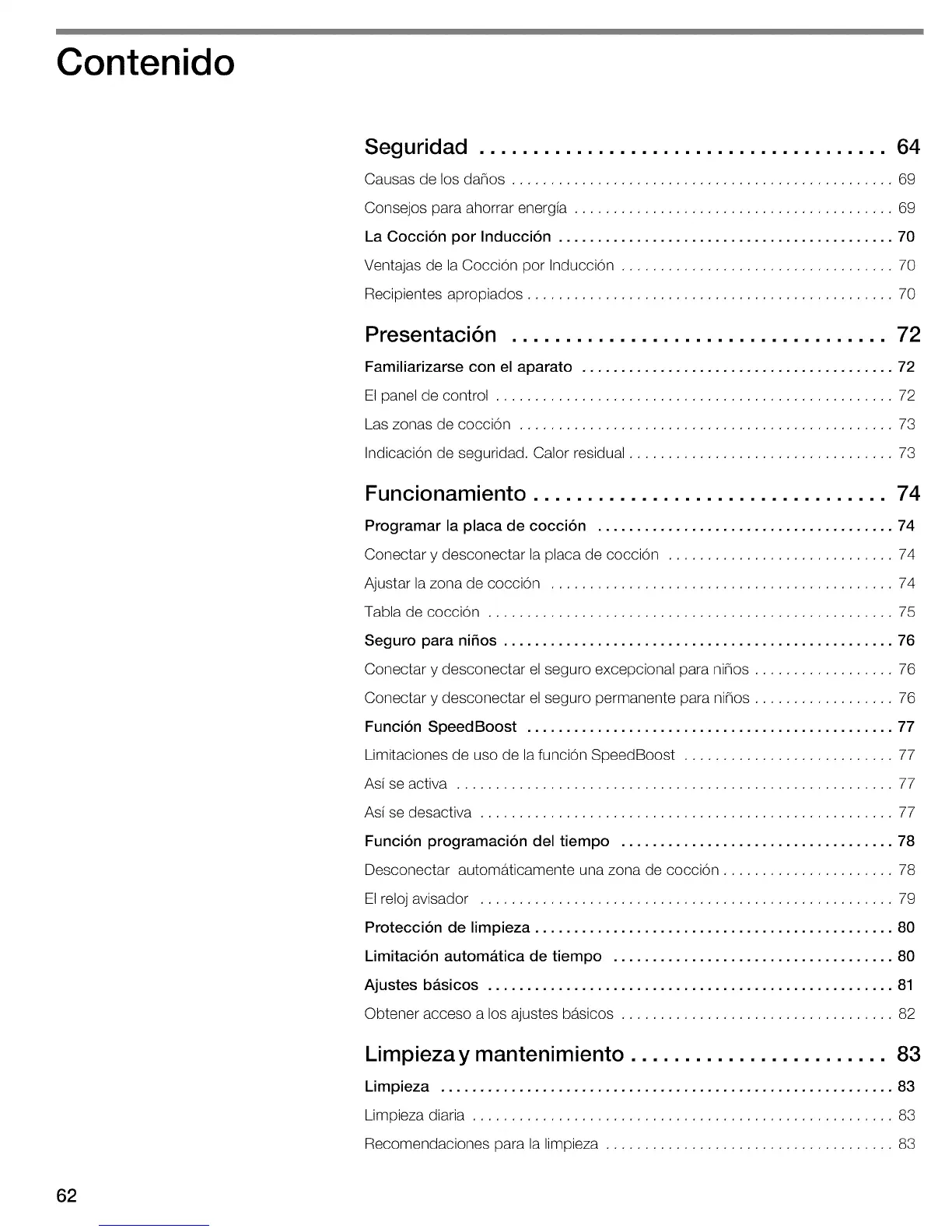 Limpieza .......................................................... 83