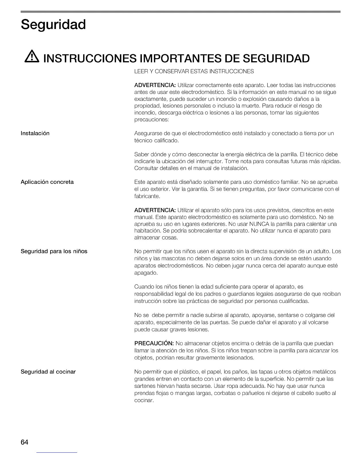 Seguridad para los nifios No permitir que los ni_os usen el aparato sin la directa supervision de un adulto. Los