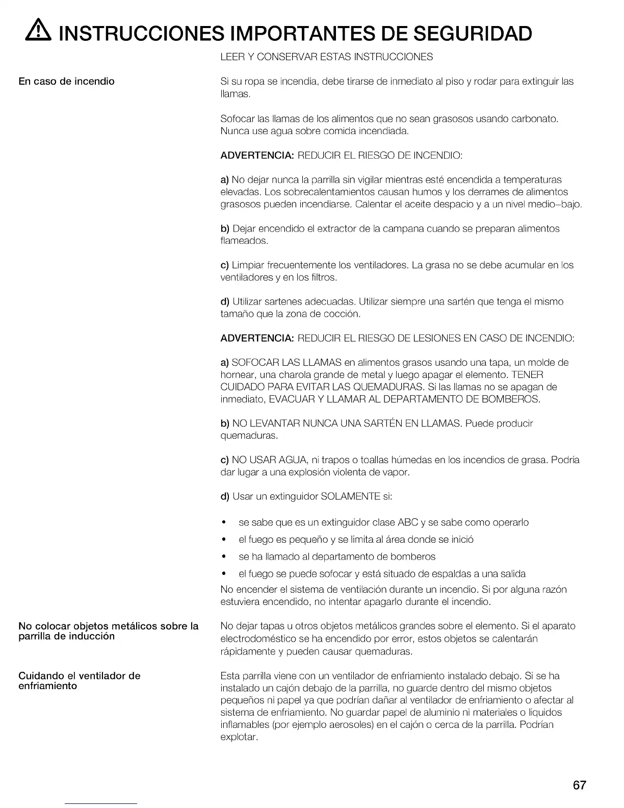 ADVERTENClA: REDUCIR EL RIESGO DE LESIONES EN CASO DE INCENDIO: