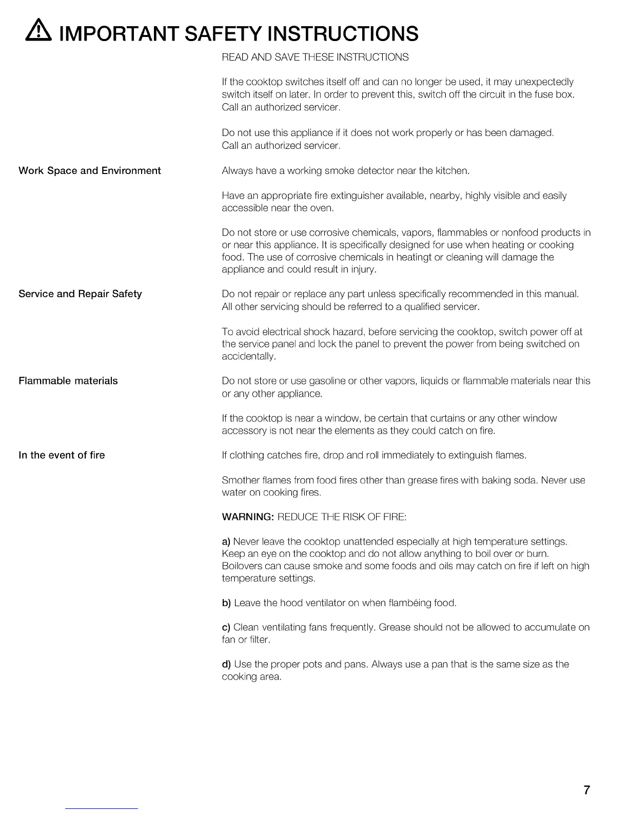 a) Never leave the cooktop unattended especially at high temperature settings.