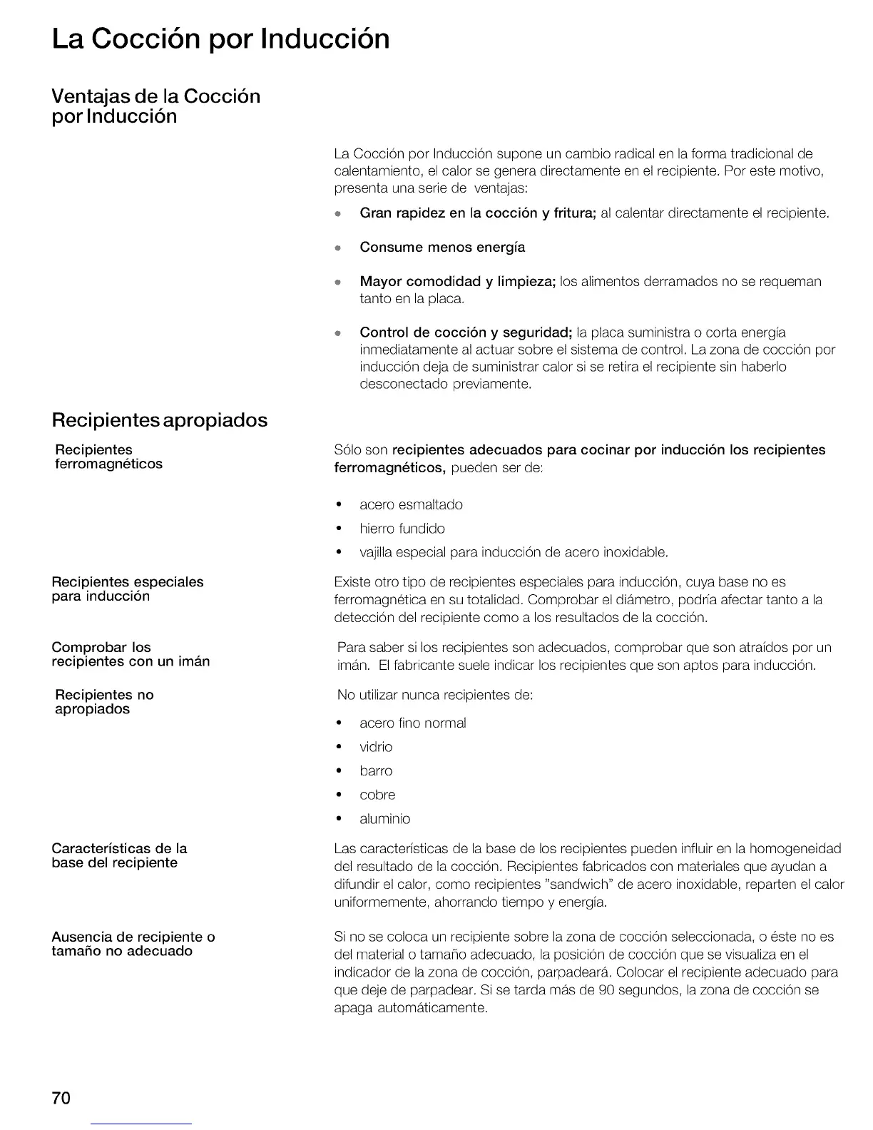 induccion deja de suministrar calor si se retira el recipiente sin haberlo