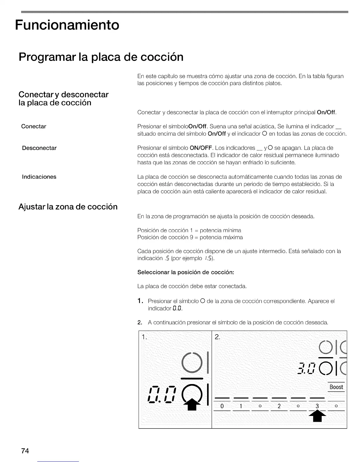 1. Presionar el dmbolo O de la zona de coccion correspondiente. Aparece el