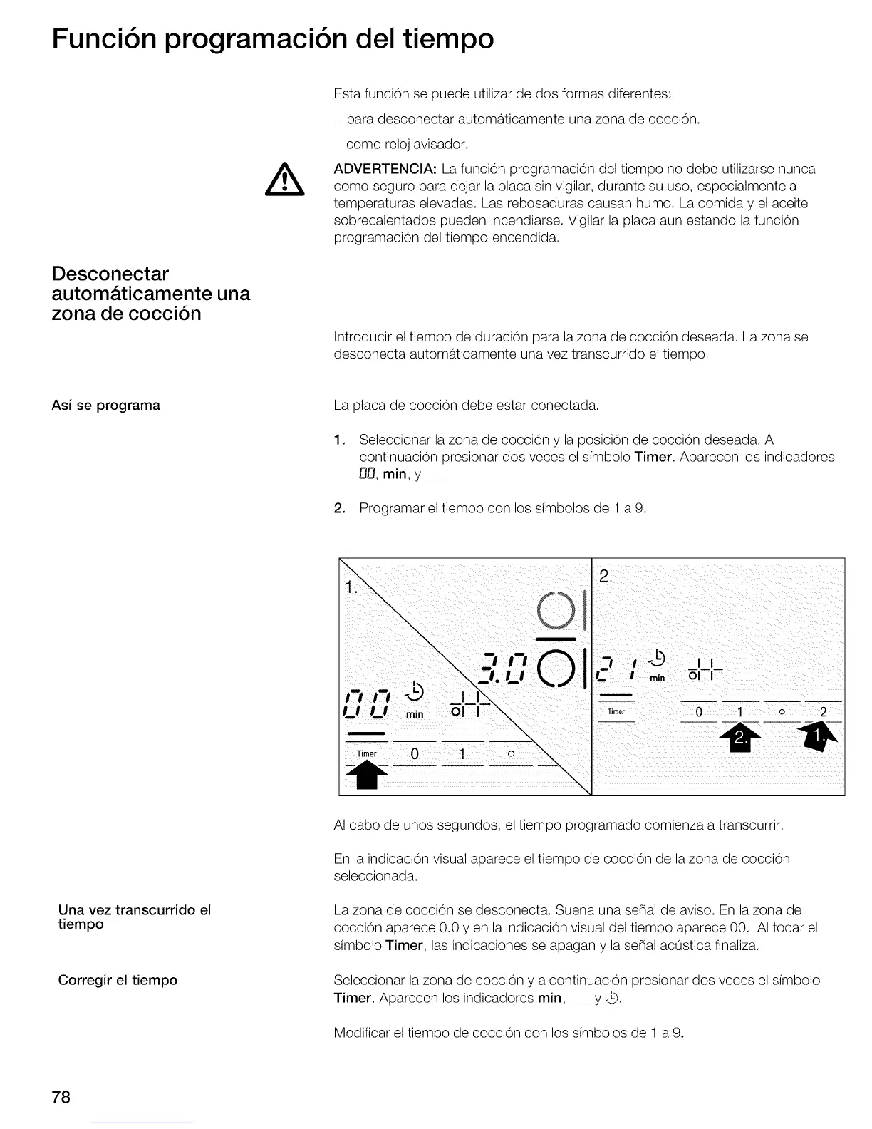 Introducir el tiempo de duracion para la zona de coccion deseada. La zona se