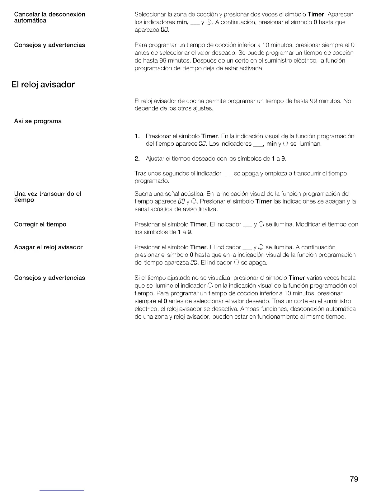 tiempo aparece _ y _. Presionar el simbolo Timer las indicaciones se apagan y la
