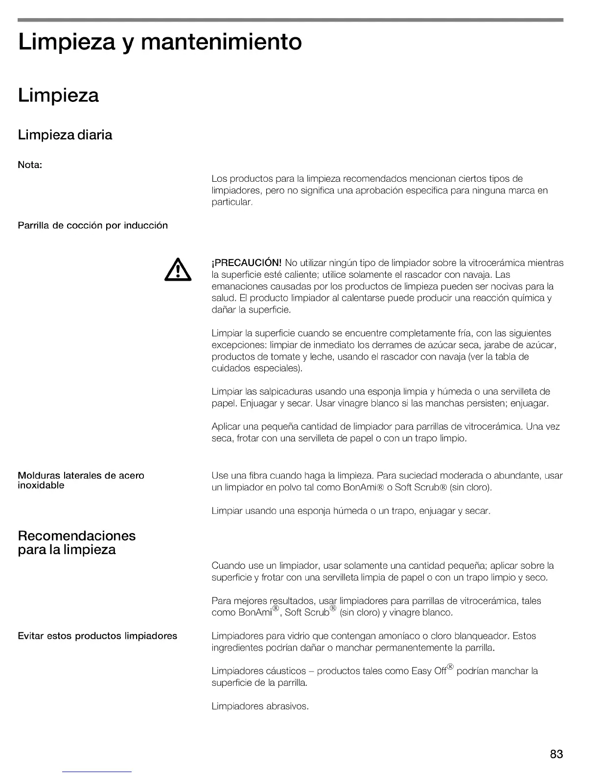 iPRECAUCION! No utilizar ningOn tipo de limpiador sobre la vitroceramica mientras