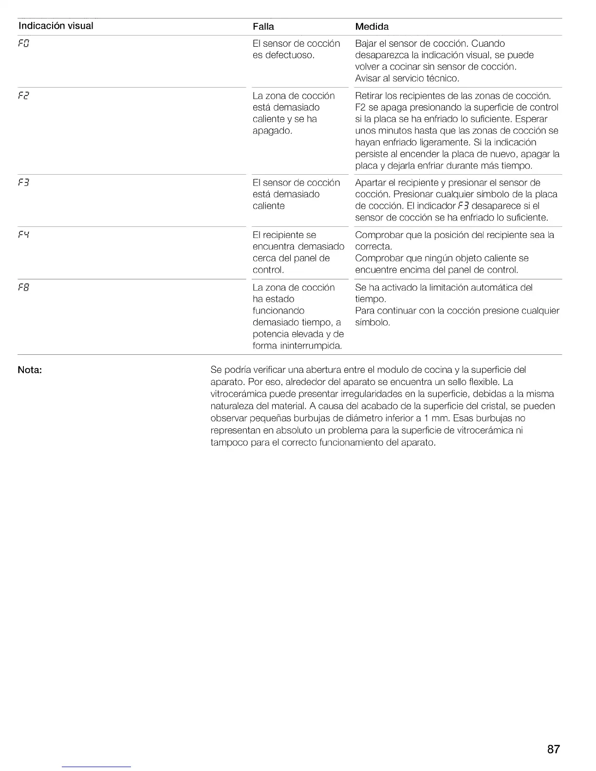 de coccion. El indicador F3 desaparece si el