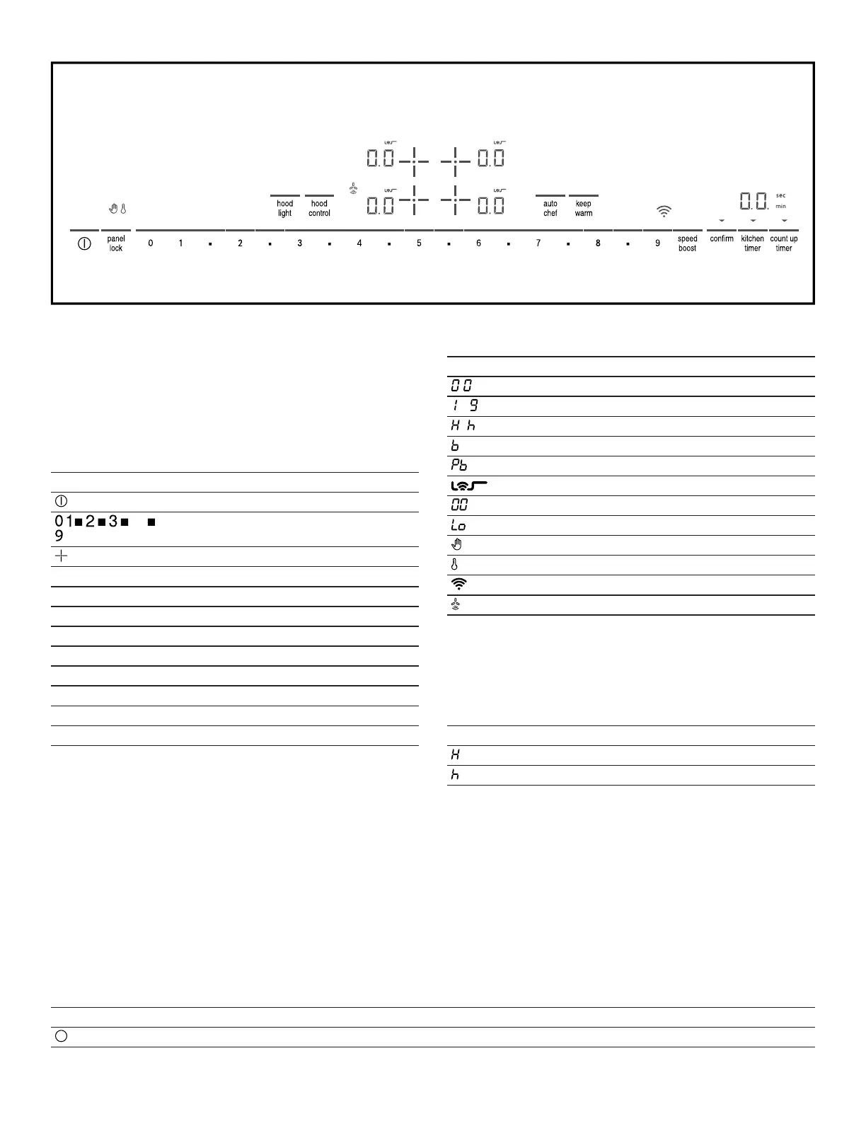 ¡ The indicators for selected functions or cooking zones