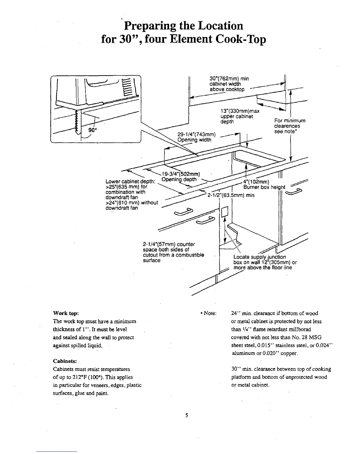 • Note: 24" rain. clearance if bottom of wood