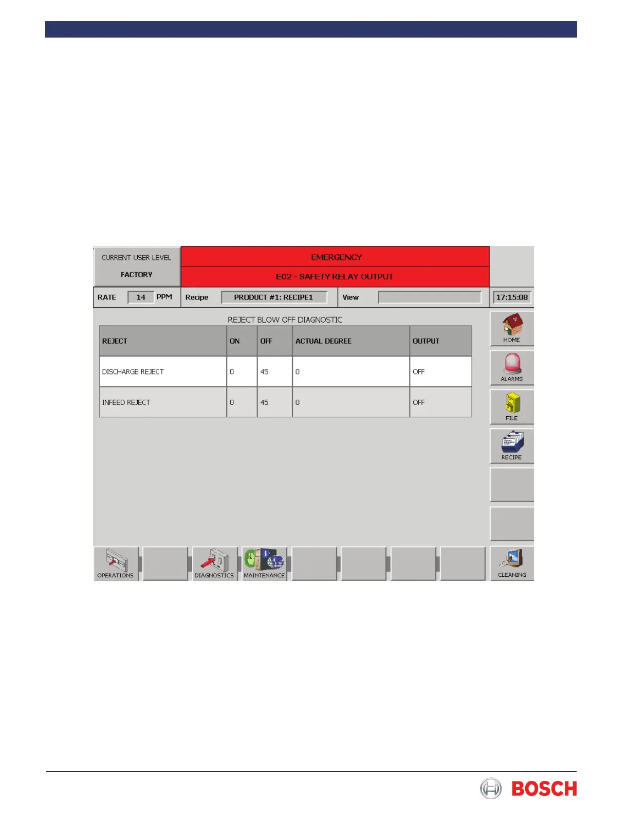 Touch the Reject Blowoff diagnostic in the list to dis-