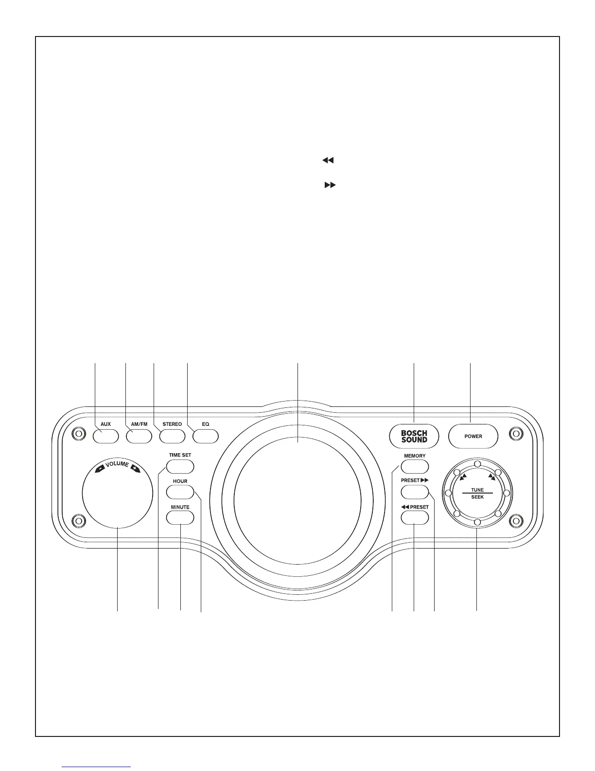 PRESET-Press to skip backward in presetting the radio