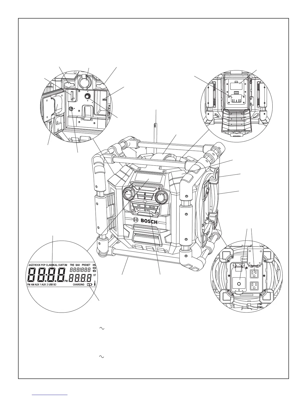 Estéreo para el sitio de construcción con tomacorriente de 4 conectores