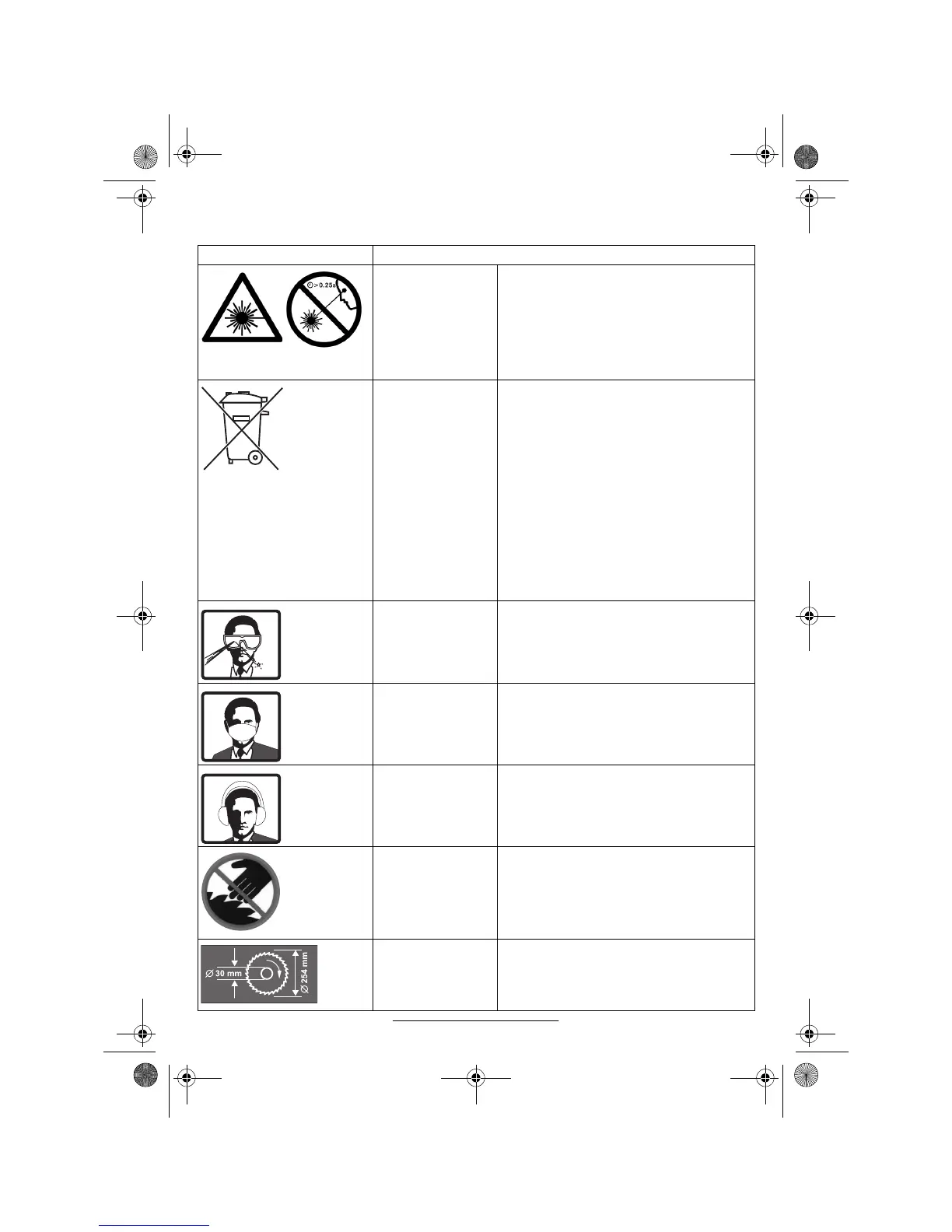 Symboles spécifiques à cet outillage