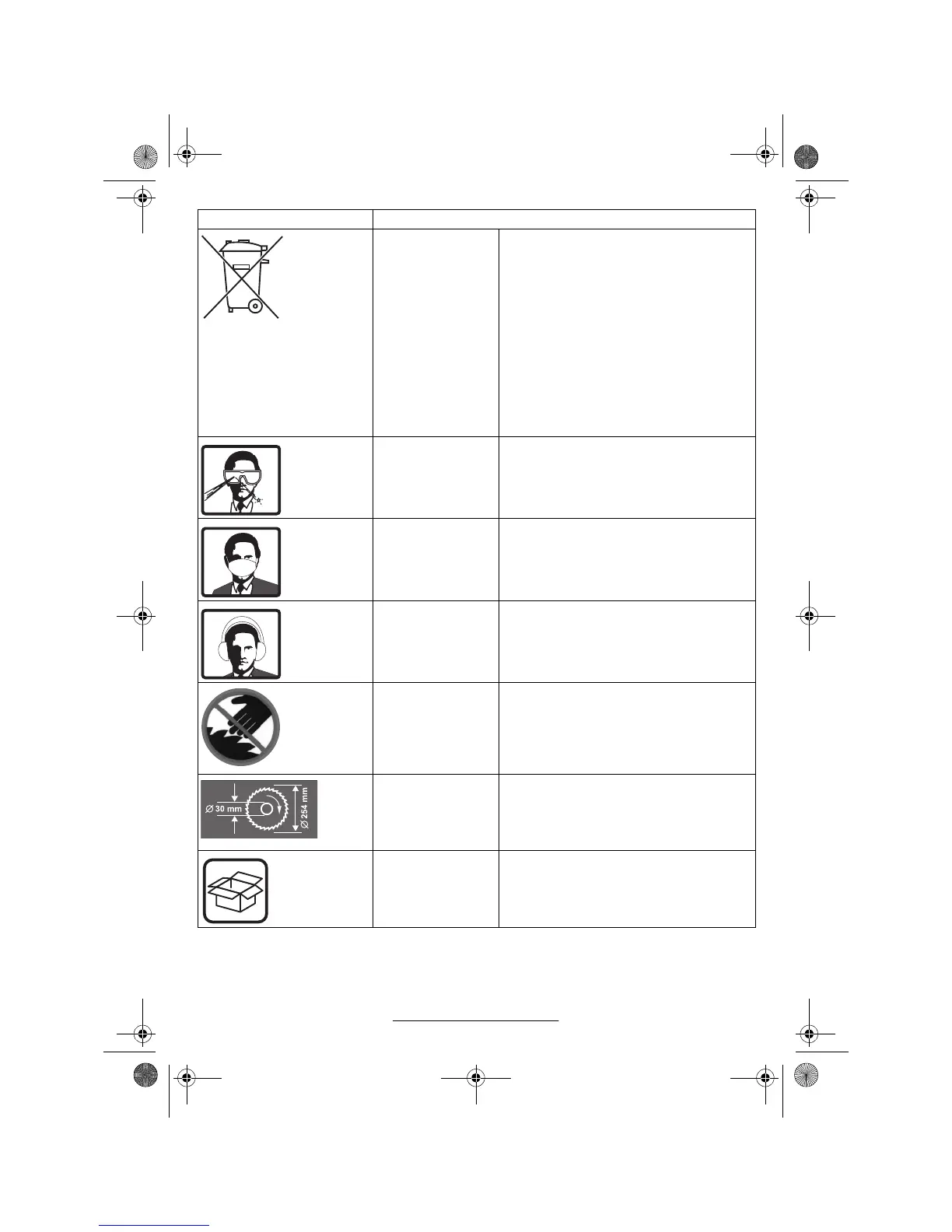 Símbolos de marcação Observe as dimensões da lâmina de serra. O diâ