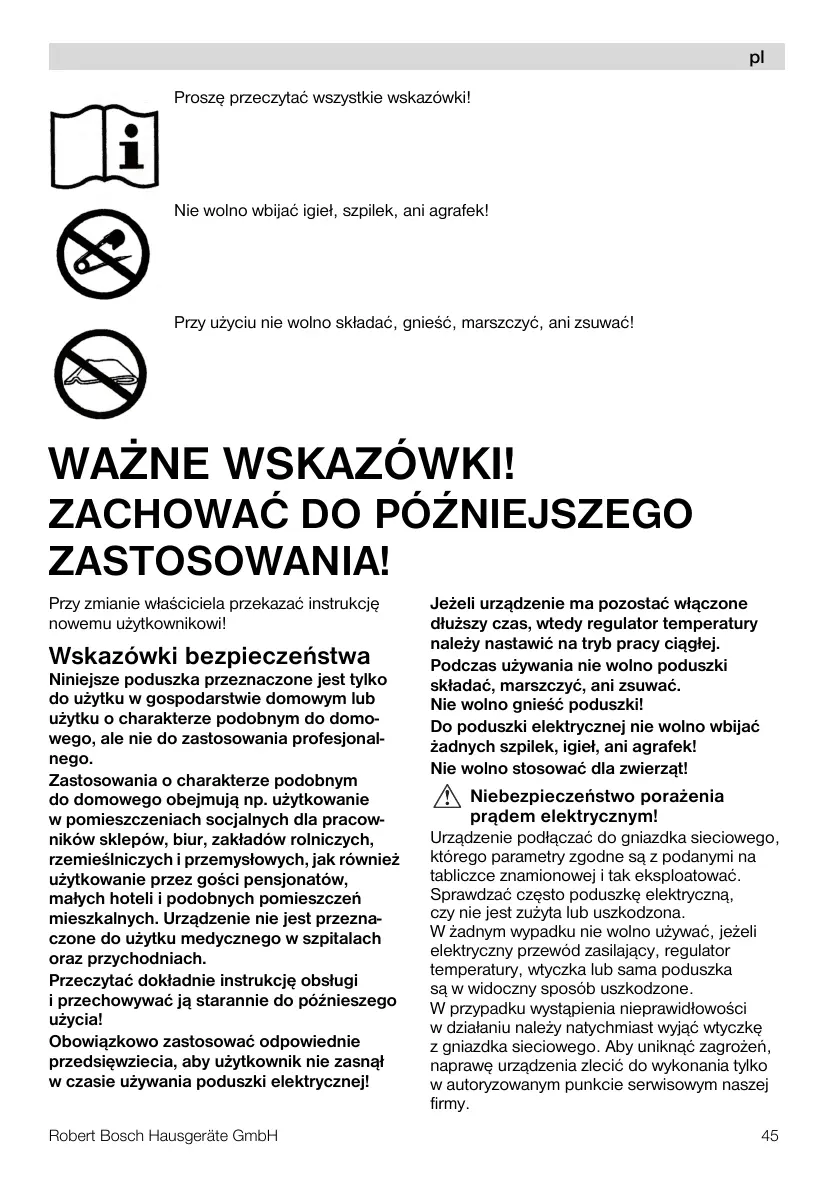 w czasie u¿ywania poduszki elektrycznej!
