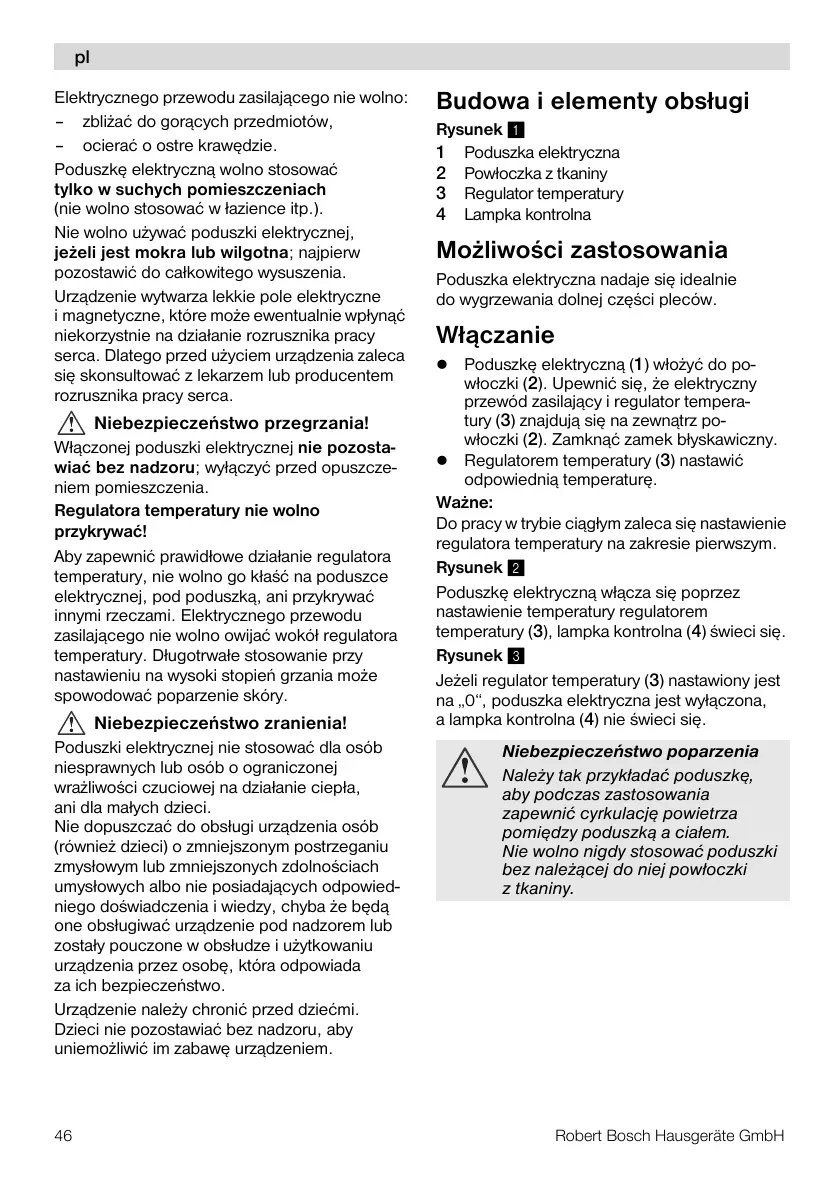 ” Poduszkê elektryczn¹ (N) wło¿yć do po-