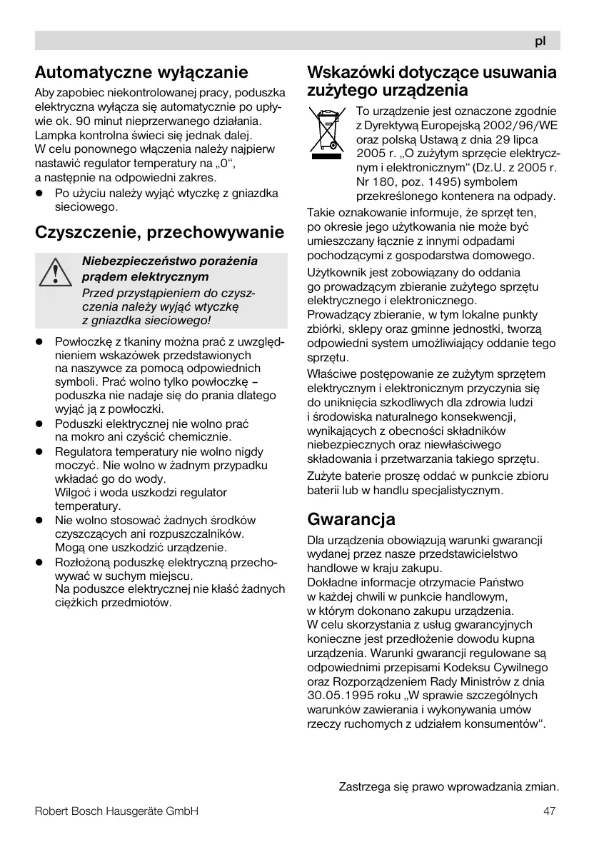 Na poduszce elektrycznej nie kłaœć ¿adnych