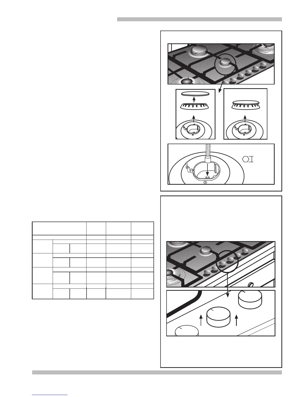1 - Retire las parrillas, tapas y cuerpo de quemador.