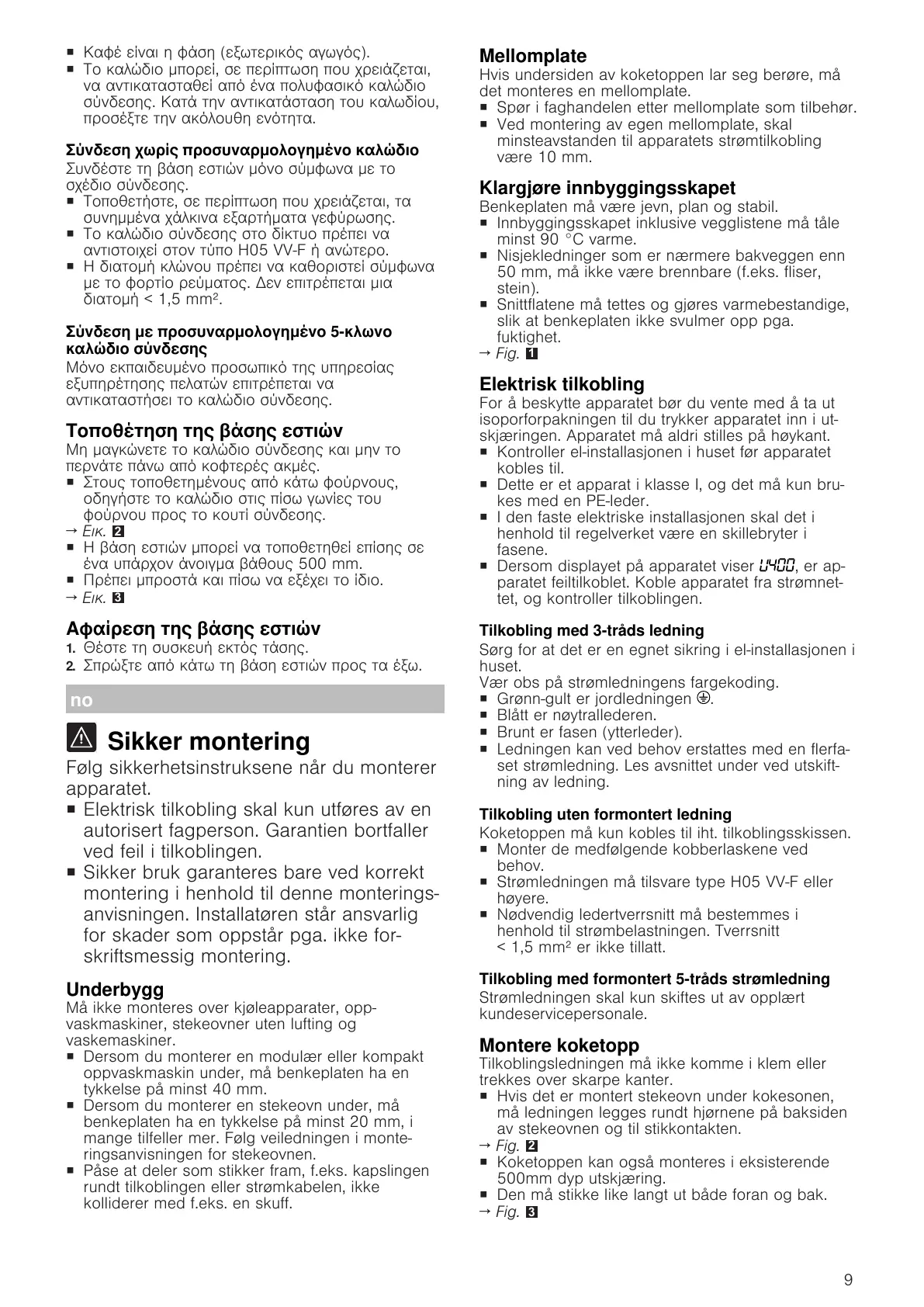¡ Kontroller el-installasjonen i huset før apparatet