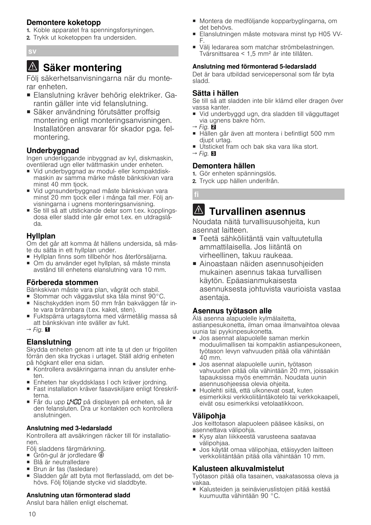 ¡ Vid underbyggd ugn, dra sladden till vägguttaget