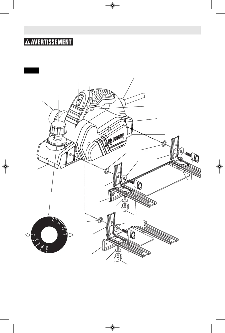Profondeur de rabotage . . .0 à 1/16 po (0 à 1,6 mm)