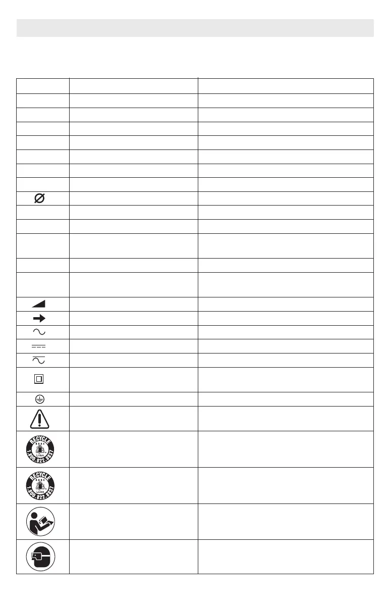 IMPORTANT : Certains des symboles suivants peuvent être utilisés sur votre outil. Veuillez les étudier et apprendre
