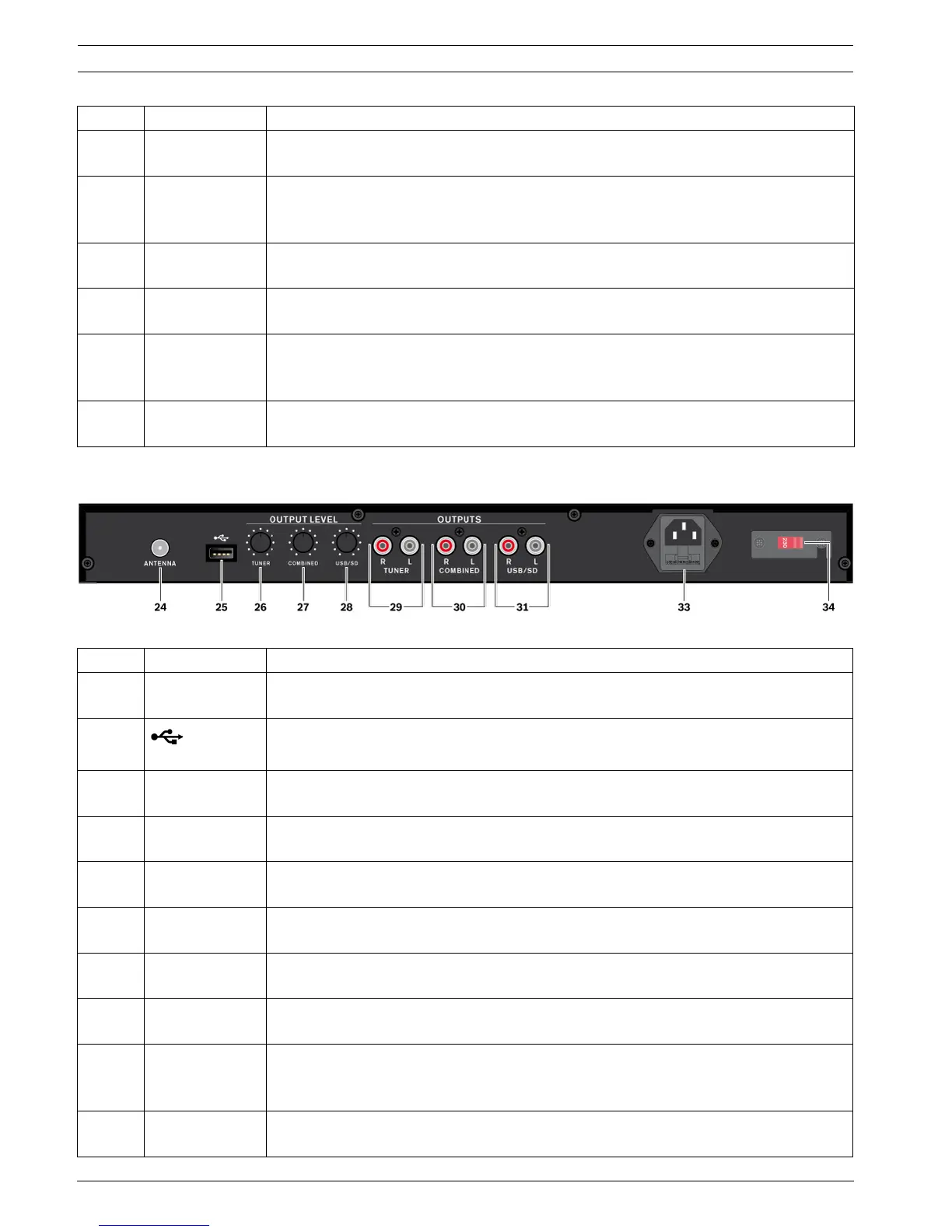 30 COMBINED R/L Combined USB/SD and FM tuner output (right and left channel) sockets.