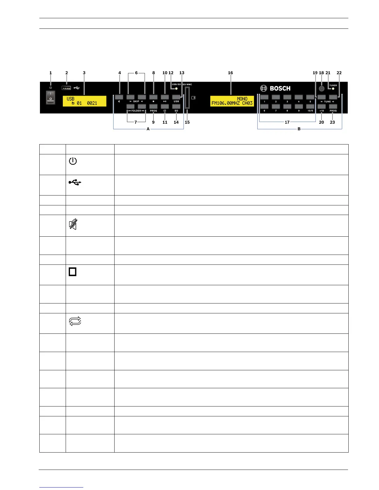 A - Keypad for USB device or SD card operation. Refer to Section 8 Operation.