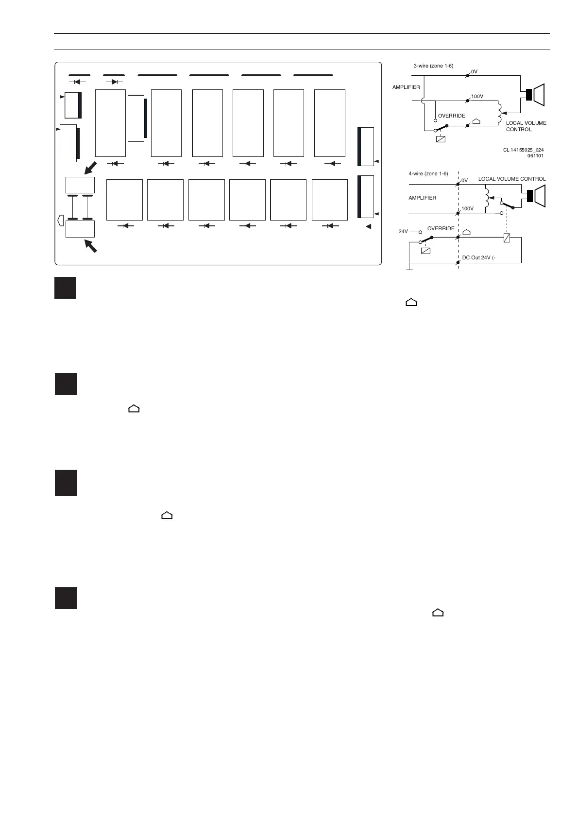 100V loudspeaker signal, or between ground and 24Vdc. This override output is available per zone and may be used to