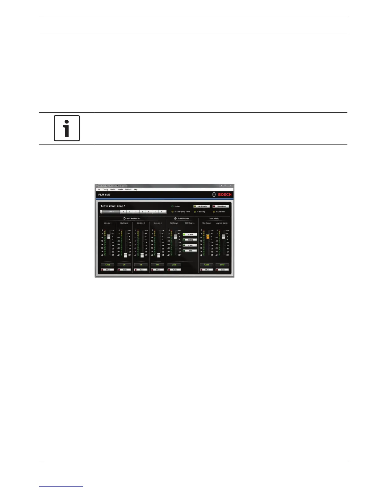 – Selection of the Line inputs and level control; per zone.