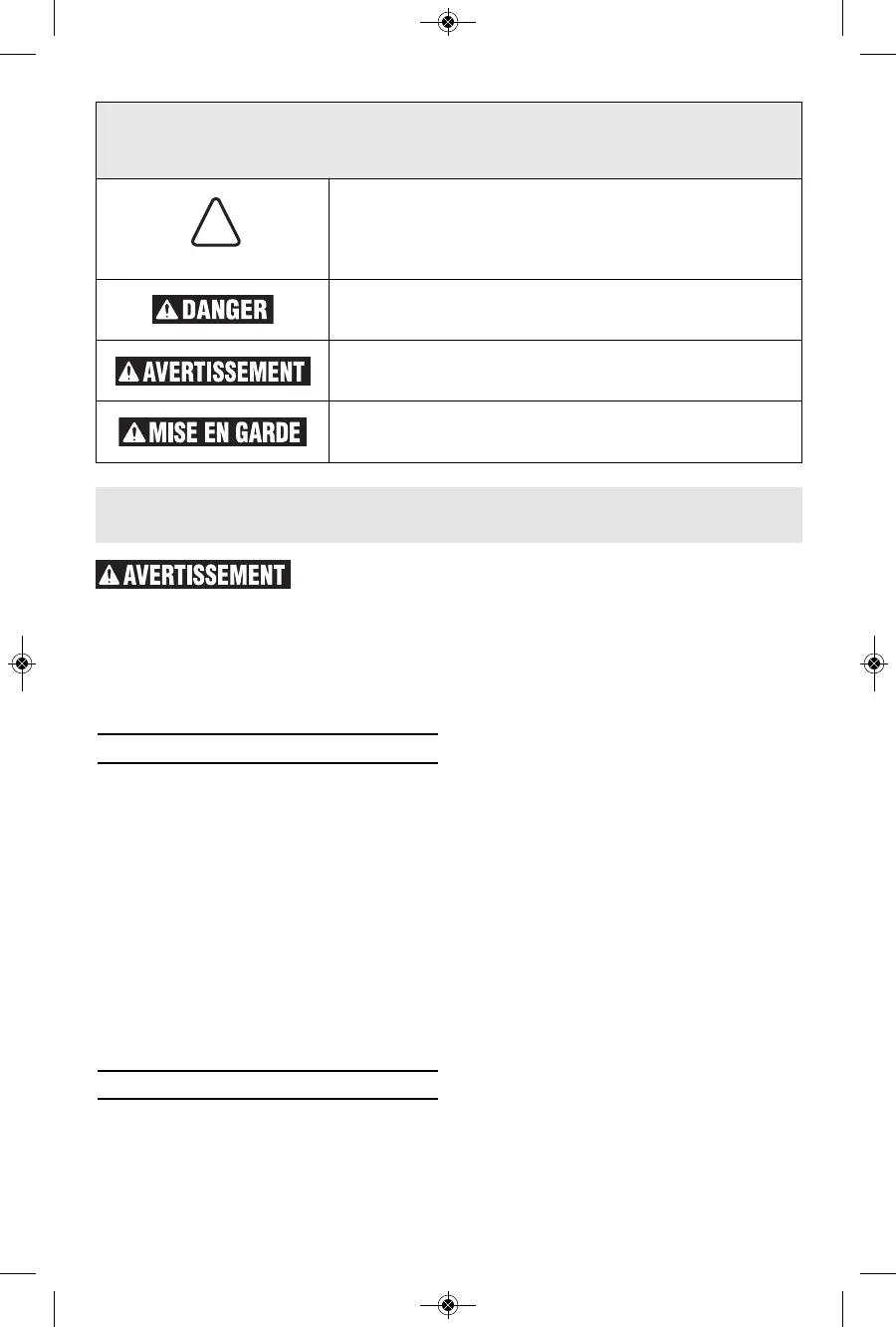 CONSERVEZ TOUS LES AVERTISSEMENTS ET TOUTES LES CONSIGNES
