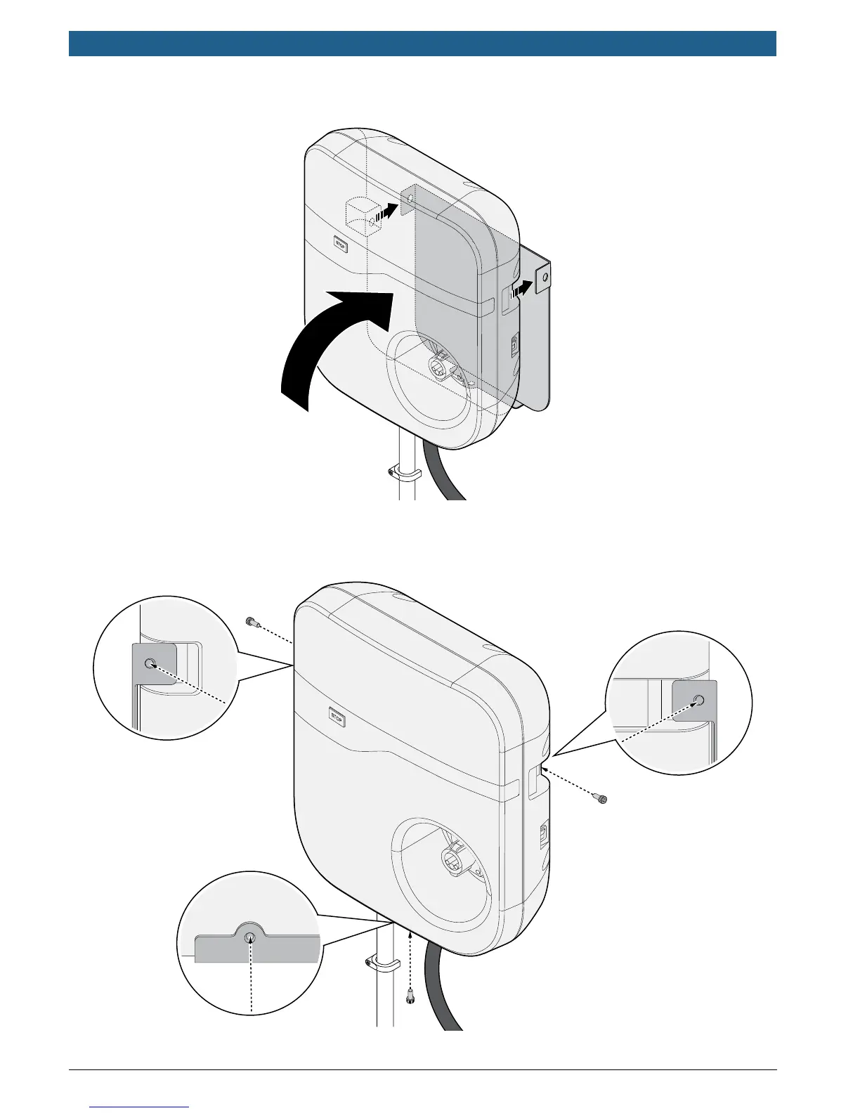 5. Voir la Figure 4-5. Alignez les orices de vis du support de montage avec la station de charge de niveau 2.