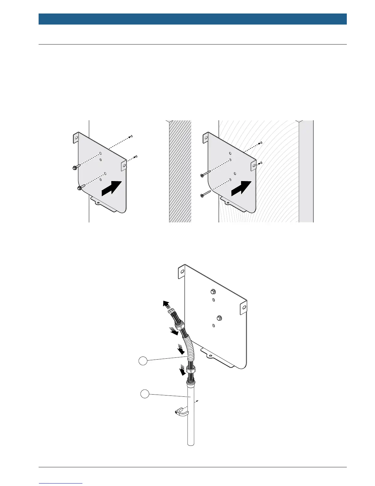 Figure 4-1. Mounting bracket use on masonry wall (left) and nished wall (right)